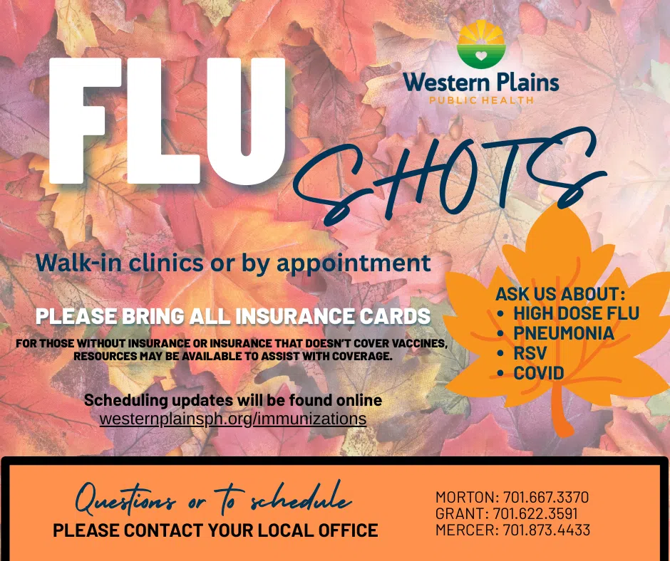 Western Plains Public Health will begin offering seasonal influenza vaccinations in October. Community members will have the option to attend walk-in clinics or schedule an appointment at their convenience.